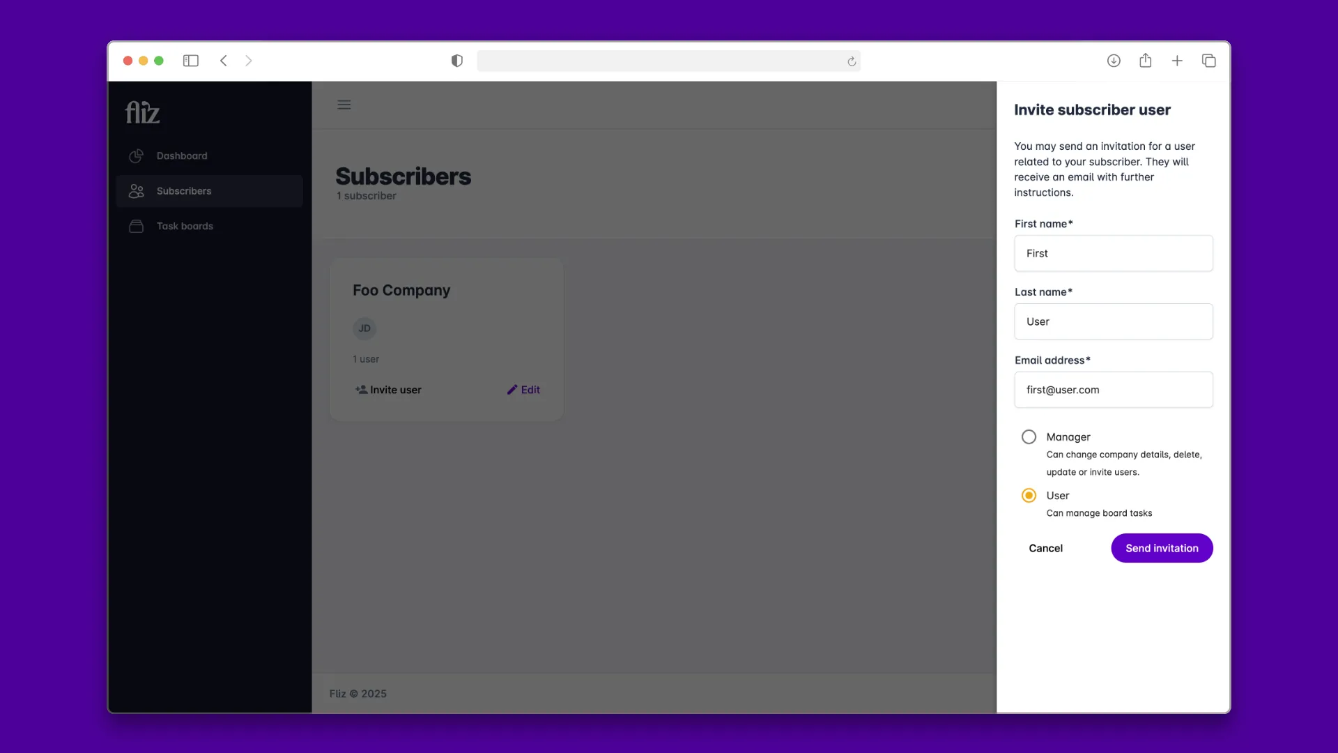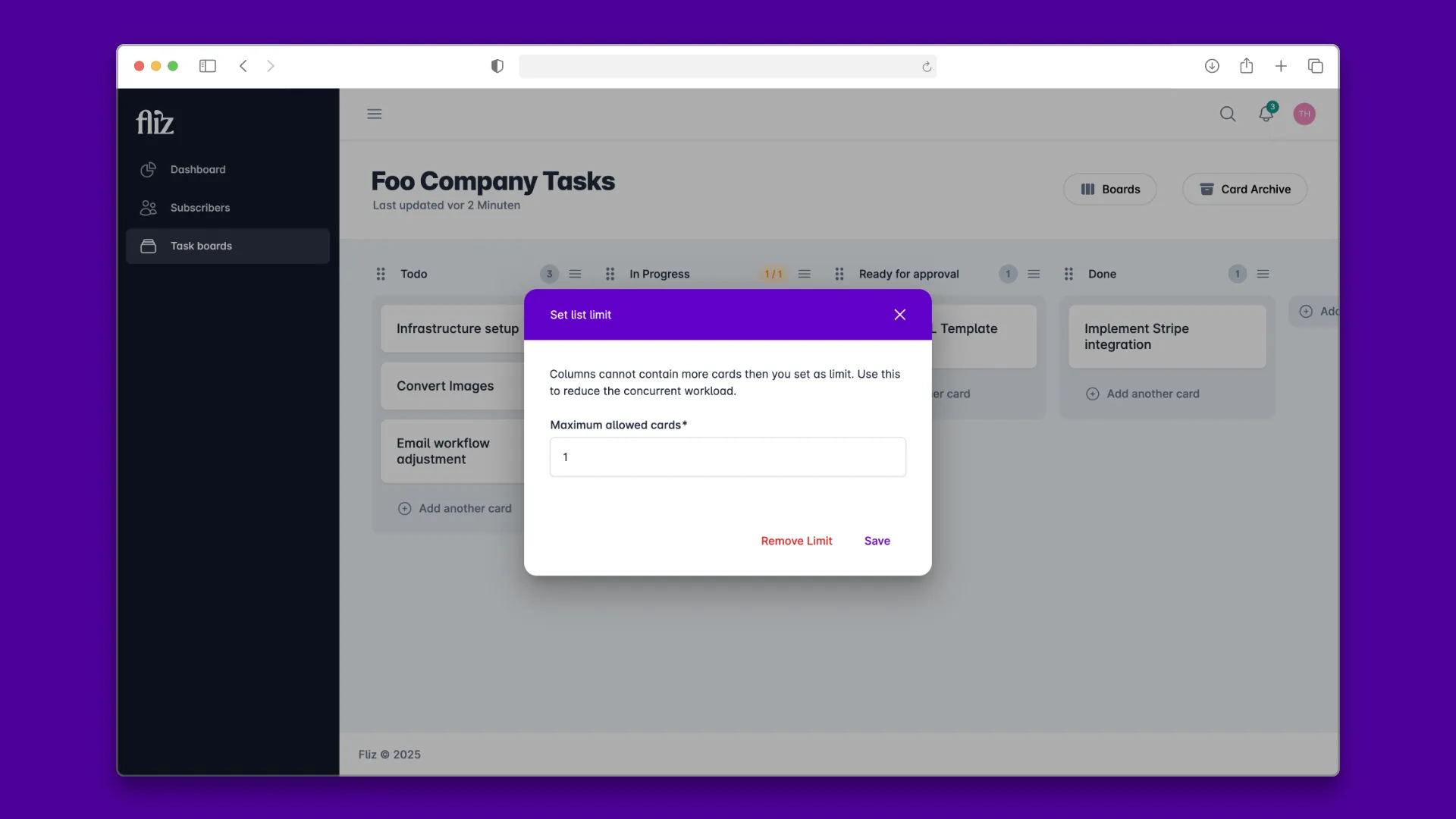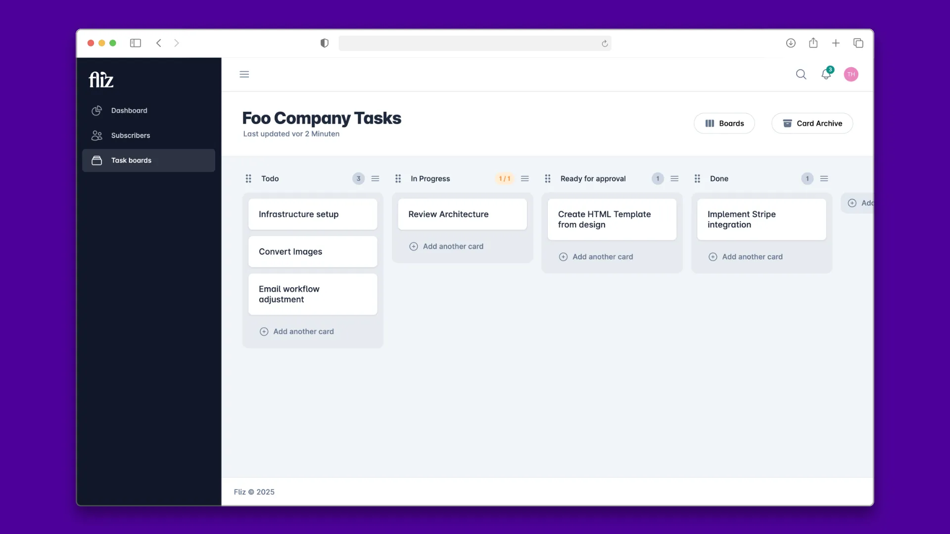 Fliz war ein internes SaaS-Projekt mit dem Ziel, Dienstleister:innen im Bereich „Productized Services“ eine Plattform zur Abwicklung ihrer Kundenprozesse bereitzustellen – inklusive Benutzerverwaltung, Zahlungsabwicklung, Aufgabenmanagement und Kundenkommunikation.